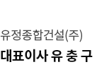 원칙을 지키며, 철저한 공사관리를 기본으로 지속가능한 관계를 유지할 수 있도록 최선을 다하겠습니다. 더불어, 유정종합건설㈜은 모든 임직원을 비롯하여, 협력업체와의 상호신뢰를 바탕으로 최고의 건축물을 만들기 위하여 끊임없이 노력하겠습니다. 감사합니다.